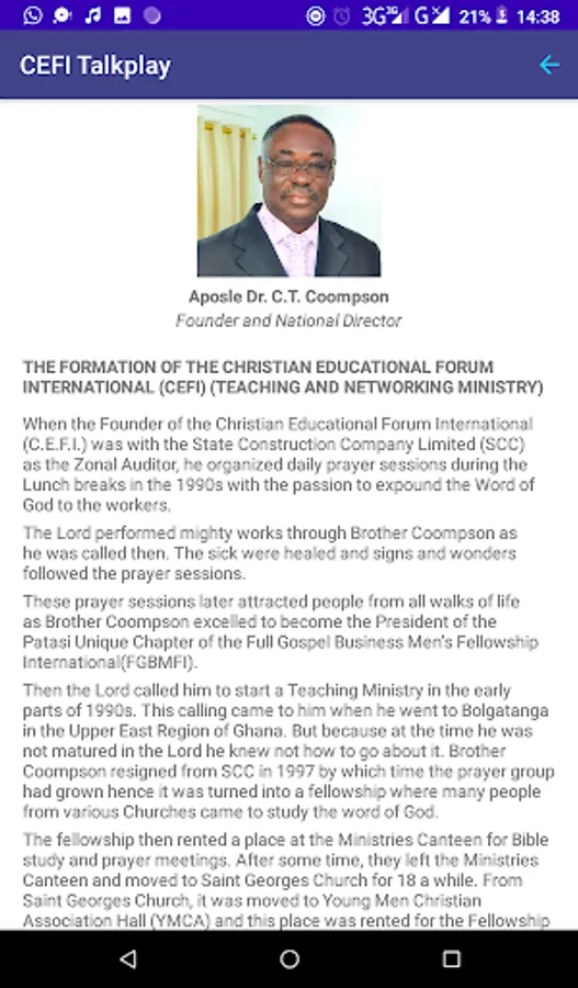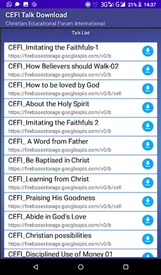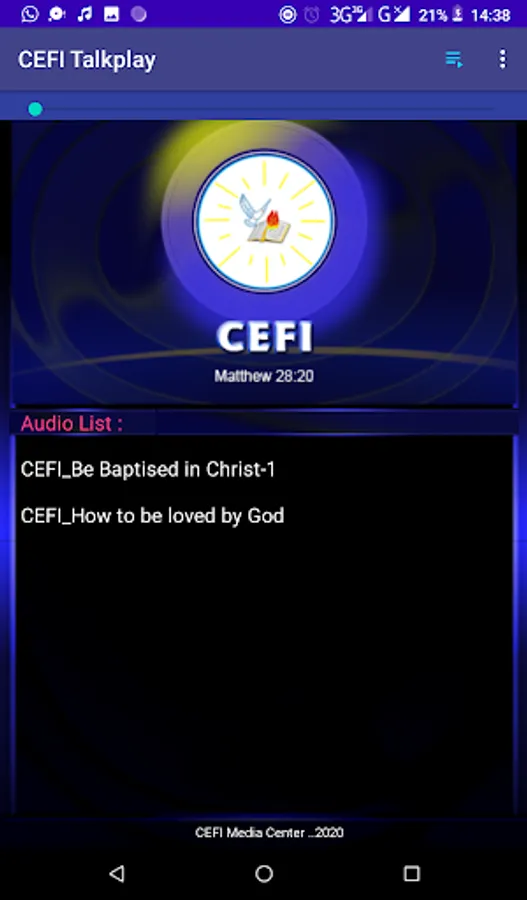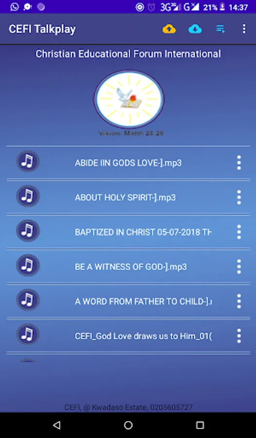 CEFI TalksApp is for streaming CEFI Biblical talks both online and offline. The talks can be downloaded and played back on this app.