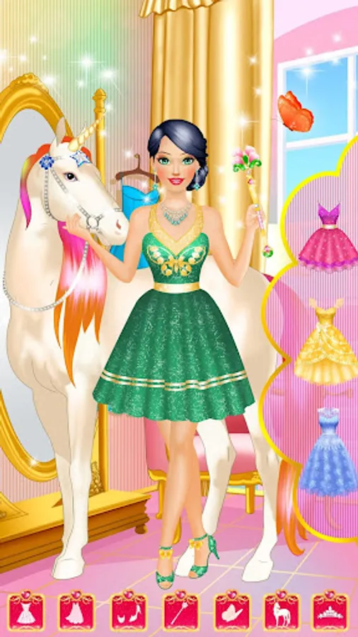 🦋 Choose from 5 butterflies that will fly around your princess after dressing her