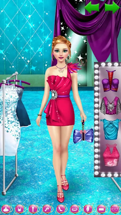 Here you’ll try on various looks and trends – you'll find only the latest outfits and accessories in this dressing room! Mix and match clothes with silk scarves and tights.