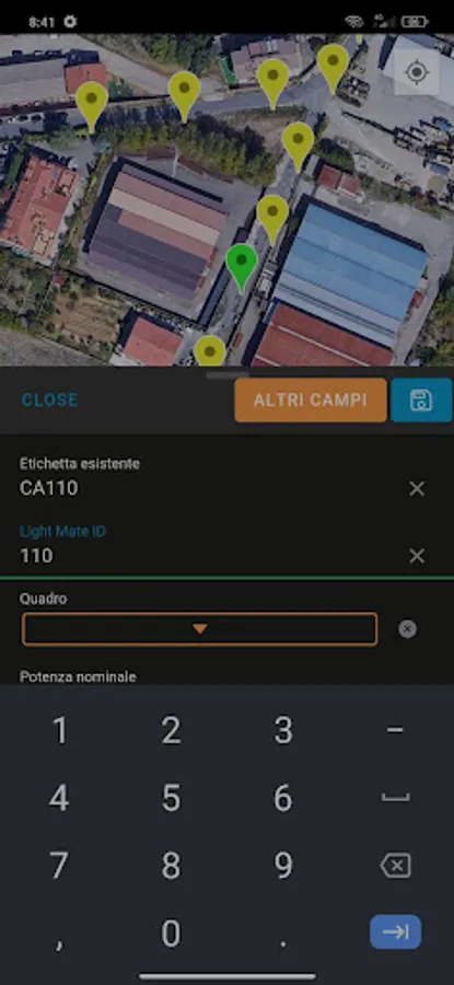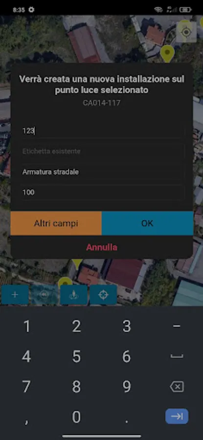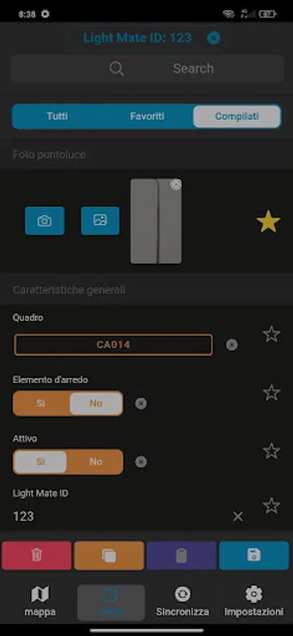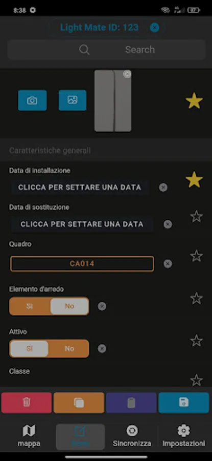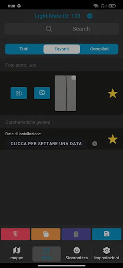 The luminaires present in the project are displayed, from which a new installation can be created. In the installation it is possible to insert all the data of the light point.