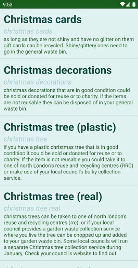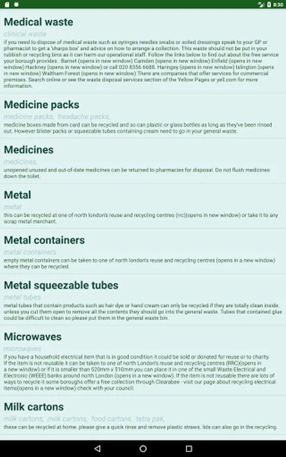 • Recycling Information Gathered from North London Waste Authority.