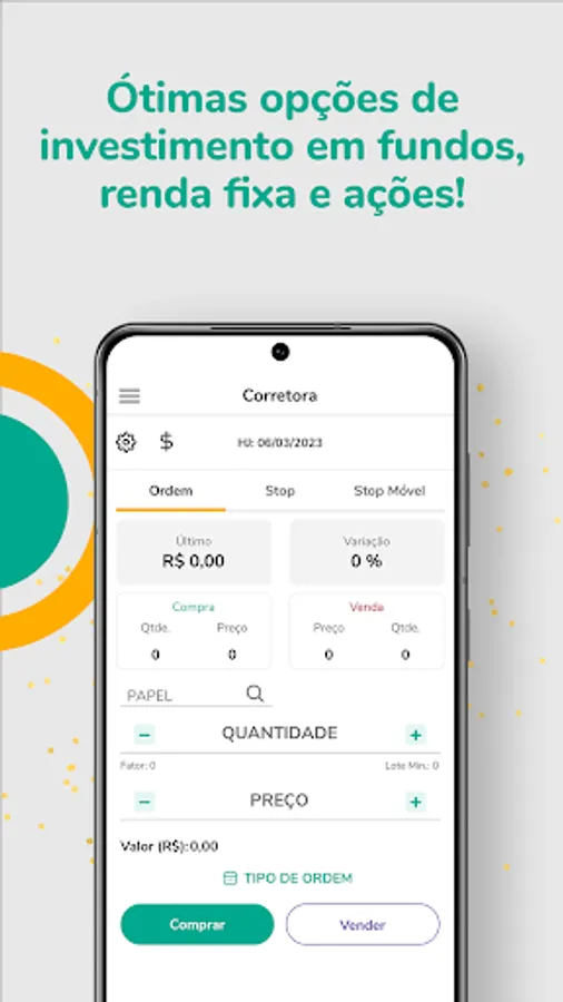 Here you invest in fixed income and have different investments in variable income. Buy and sell shares, real estate funds, BDRs and EFTs on the Stock Exchange and many other investment opportunities that fit in your pocket at Corretora Sofisa Direto.