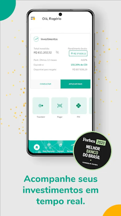 Invest in fixed and variable income in the digital bank that has FGC security and was nominated by Forbes for understanding investments. Open your account now with a bank that has more than 60 years of history!