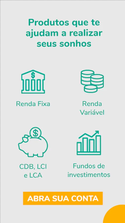 Invest in fixed income (LCA, LCI or CDB) and variable income (Shares, BDRs, FIIs and +) 🪙