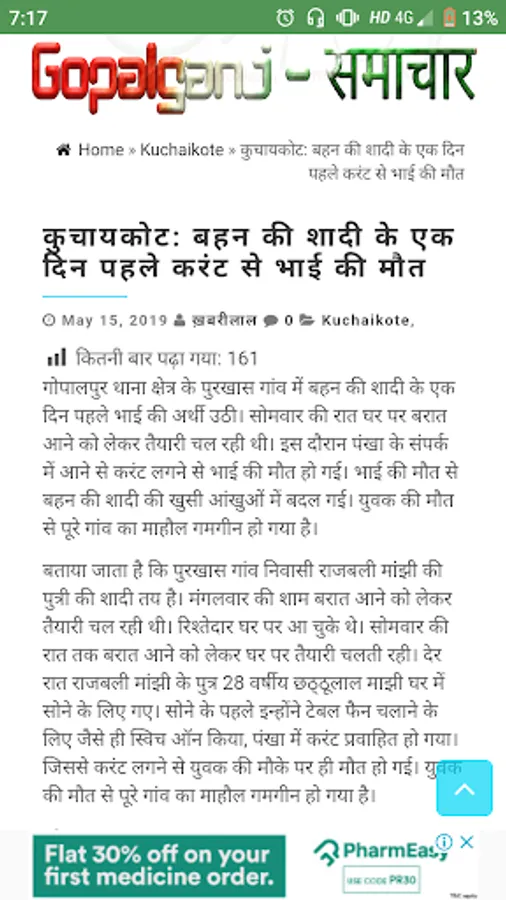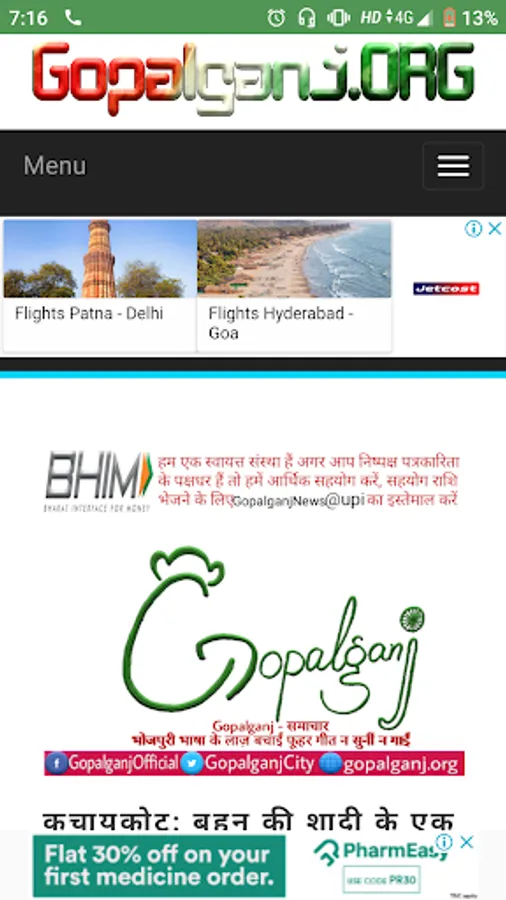 Gopalganj.ORG की खबरों के लिए जुड़िये हमारे साथ हम पहुँचाते हैं स्थानीय ख़बरों को सीधे आपतक 24x7 Live