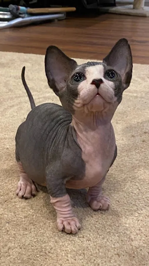 Sphynx cats are known for their extroverted behavior. They display a high level of energy, intelligence, curiosity, and affection for their owners. They are one of the more dog-like breeds of cats, frequently greeting their owners at the door and friendly when meeting strangers.