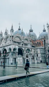 The church entrance (or lobby area) and the façade of St. Mark's Basilica were built in the first quasi of the 13th century, most of the mosaics were completed, and the domes were covered with higher wood, to match the Duca's Palace rebuilt in the Gothic architectural style which was covered with lead.