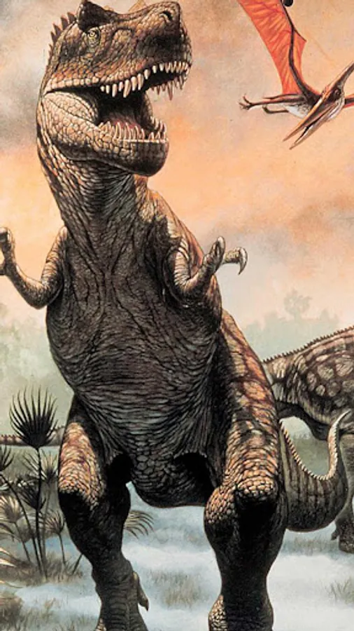 Tyrannosaurus, walking on powerful hind legs; in the light of recent studies, standing in a bent body position and balancing with its tail; exceeding 12 meters in length and 4 meters in height when standing upright; It was a large creature, the adults of which weighed 4-6 tons. Members of this genus lived in North America and Asia.
