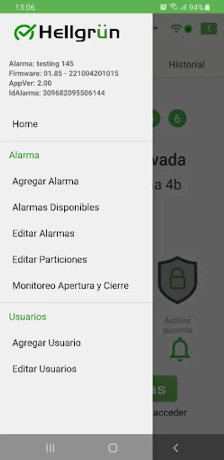 With the "Hellgrûn Check" app you can control, manage and monitor Hellgrûn K1 alarm systems.