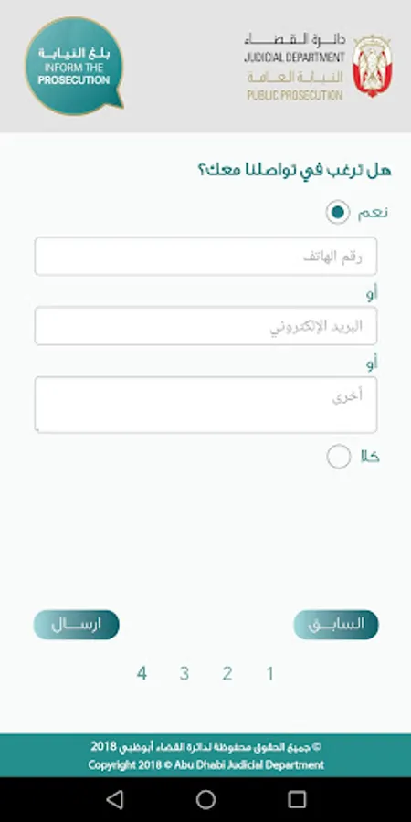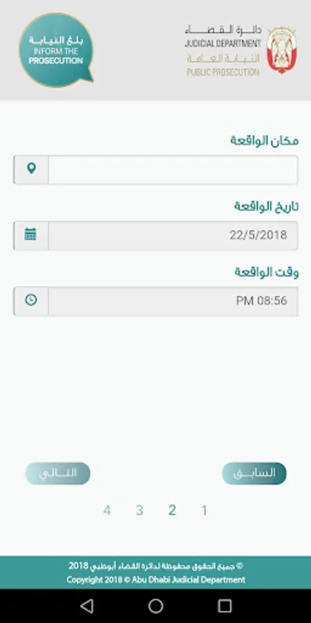Inform the Prosecution is a smart application that operates on smart phones and is available free for all citizens, residents, and visitors of the Emirate of Abu Dhabi.