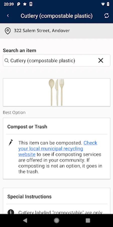 Search for waste materials to learn how they can be recycled, composted, or disposed of, in the Town of Andover.