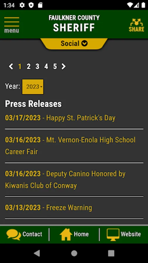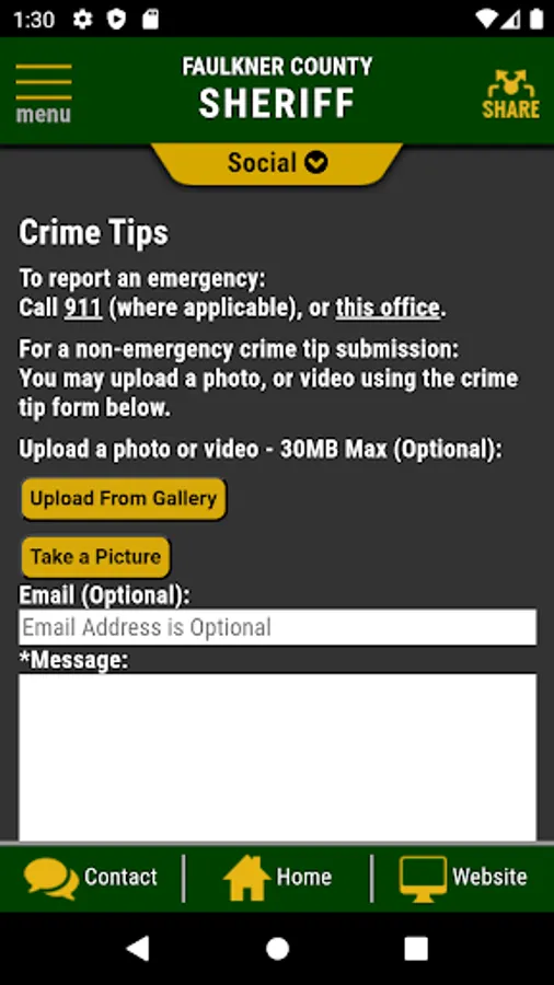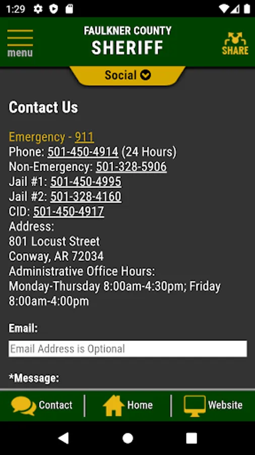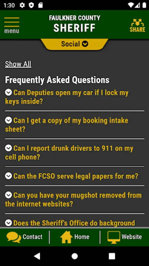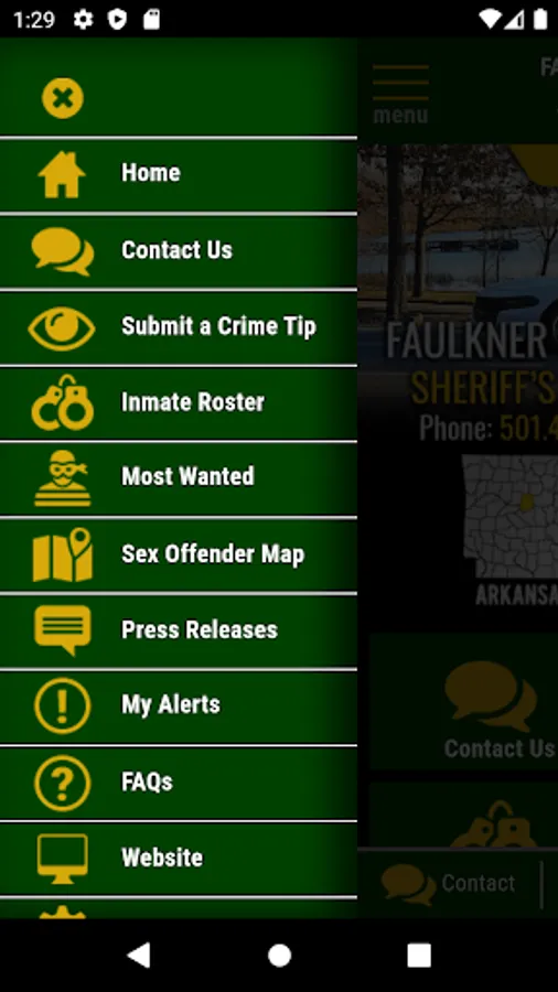 The Faulkner County Arkansas Sheriff's Office app has public information for press releases, inmates, most wanted, sex offenders, special alerts, and FAQ's. Crime tips and contact us messages can be sent to the Sheriff's Office.