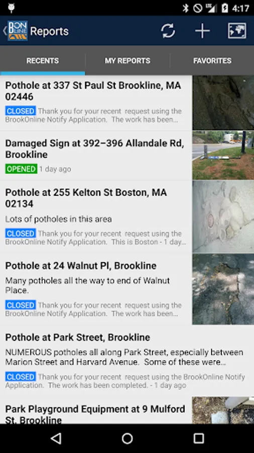 BrookOnline helps residents make their neighborhoods more beautiful by reporting local issues including potholes, graffiti, and streetlight outages. Residents can track the status of reports they or other members of the community have submitted.