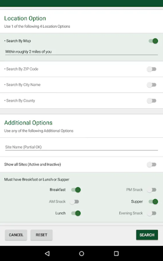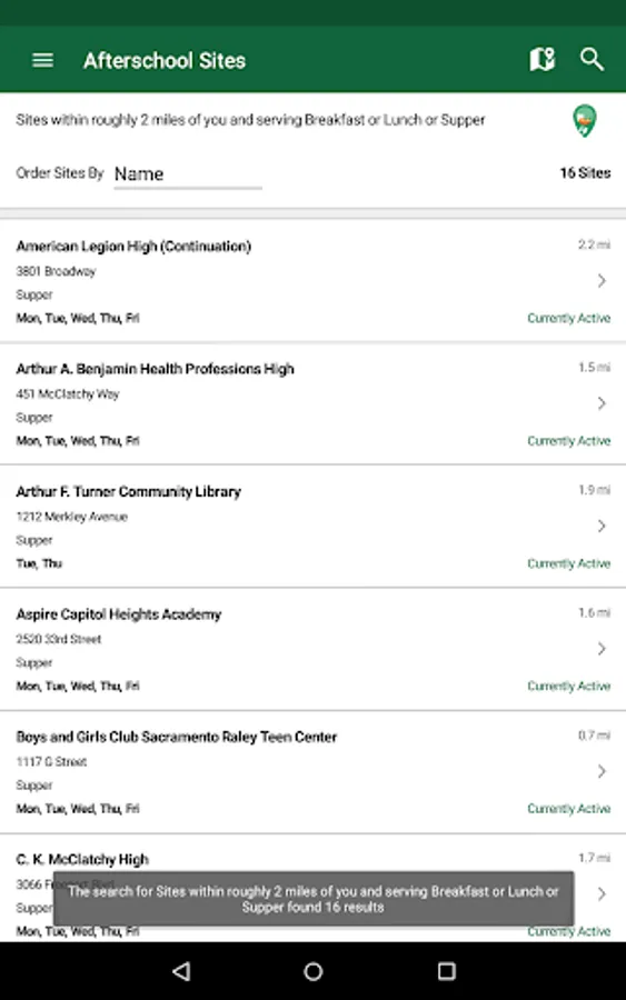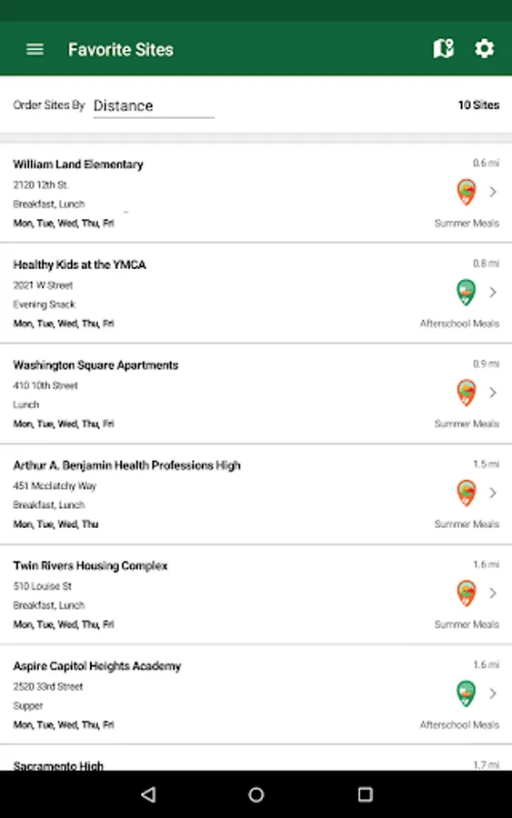 The CA Meals for Kids mobile app helps you find, save, and share nearby California meal sites by searching on a variety of criteria.