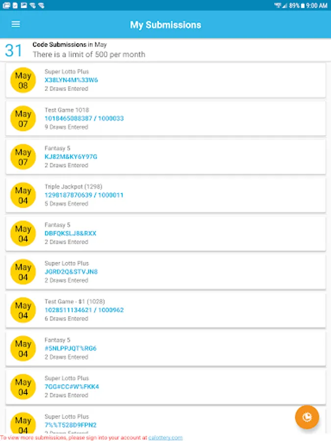 • 2nd Chance Drawings – Find special promotions, enter non-winning Scratchers, SuperLotto Plus, and Fantasy 5 tickets into bonus draws, and track your submissions.