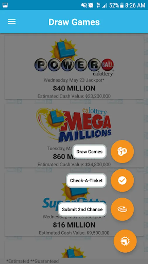 Welcome to the California Lottery Official App, where you can follow the Lottery in the palm of your hand - anytime, anywhere. Download the app today to personalize your experience by choosing your favorite ways to play!