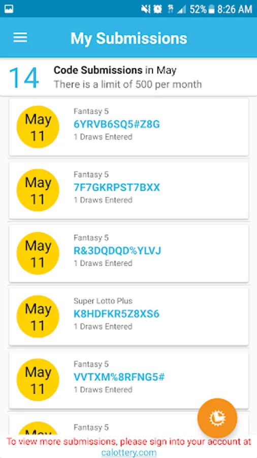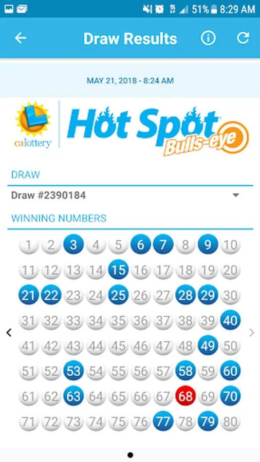 Although every effort is made to ensure the accuracy of the winning number information in the California Lottery Official App, mistakes can occur. Please be sure to refresh your screen and look for the draw date when viewing winning numbers. In the event of any discrepancies, California state law and California Lottery regulations prevail. Complete game information and prize claiming instructions are available at www.calottery.com and all California Lottery Retailers.