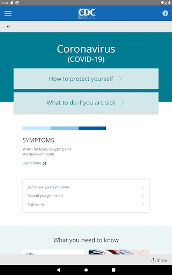 The app ensures that you’re getting the most up to date health information. The home screen lets you see all your information in one place and updates whenever your device is connected to WI-FI. Enjoy a greater variety of content such as Disease of the Week, disease case counts, videos, podcasts, and features to give you the most current health information from CDC.