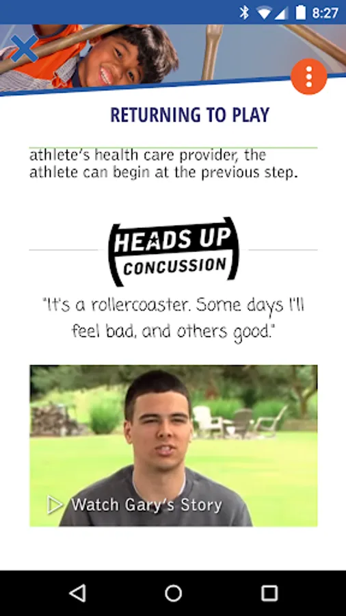 The CDC HEADS UP Concussion and Helmet Safety app will help you learn how to spot and what to do if you think your child or teen has a concussion or other serious brain injury. The application includes a helmet fit feature that teaches about proper helmet fit, safety and care as well as providing other tools and materials for youth and high school sports coaches, parents, athletes, and school and health care professionals that provide important information on preventing, recognizing, and responding to concussion.