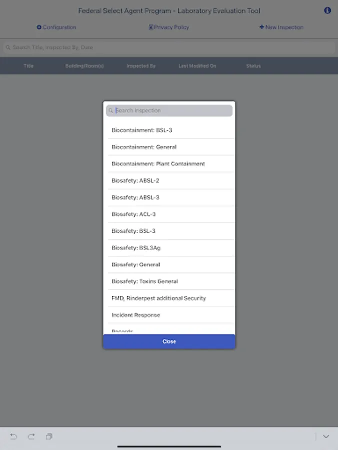 The Federal Select Agent Program Laboratory Examination Tool (FSAP-LET) was designed to provide laboratory managers and biosafety personnel with a tool to assist with performing internal laboratory inspections. The tool contains checklists that are based on federal regulations and biosafety standards used by Federal Select Agent Program (FSAP) inspectors. The checklists cover a variety of areas such as biosafety, security, training, and incident response.