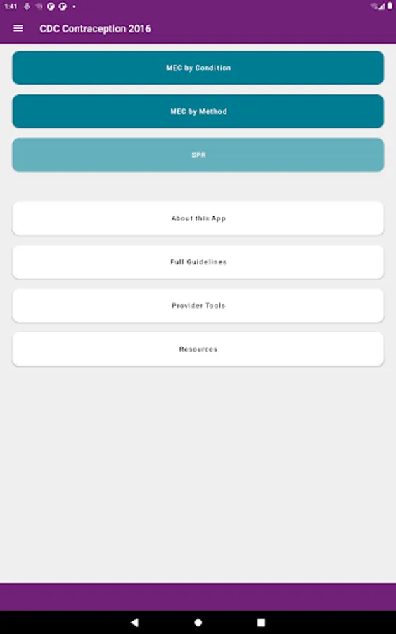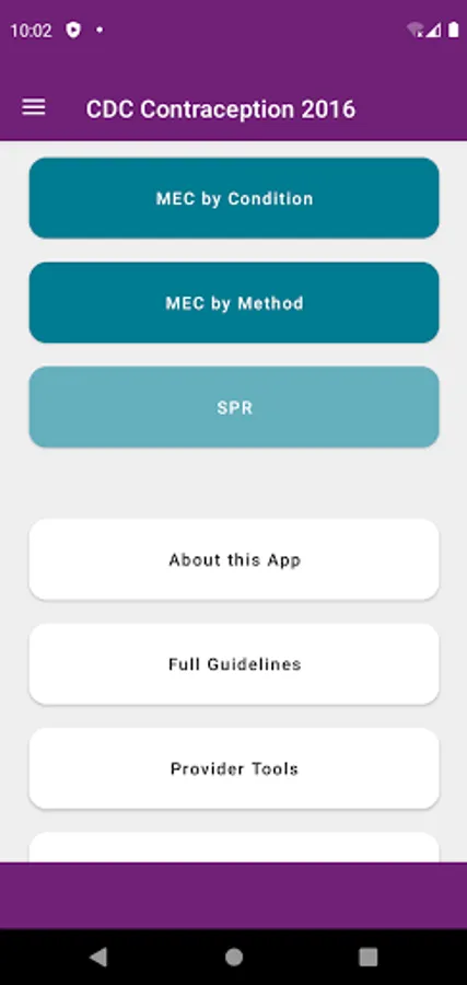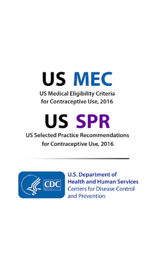 The U.S. Medical Eligibility Criteria for Contraceptive Use comprises recommendations for the use of specific contraceptive methods by patients who have certain characteristics or medical conditions. The U.S. Selected Practice Recommendations for Contraceptive Use addresses a select group of common, yet sometimes controversial or complex, issues regarding initiation and use of specific contraceptive methods. The app is developed directly from the CDC Morbidity and Mortality Weekly Report (MMWR) by the Division of Reproductive Health and covers more than 60 characteristics or medical conditions (U.S. MEC) and numerous clinical situations (U.S. SPR). These recommendations are intended to assist healthcare providers when they counsel women, men, and couples about contraceptive method choice and use. Although these recommendations are meant to serve as a source or clinical guidance, healthcare providers should always consider the individual clinical circumstances of each person seeking family planning services.