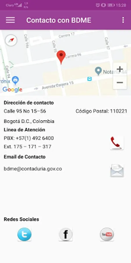 If the consulted user submits a report from a public entity of the national or territorial order, the document number and the reporting entity will be displayed, as well as the telephones and data of said entity.