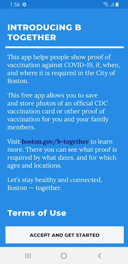 This app helps people show proof of vaccination against COVID-19, if, when, and where it is required in the City of Boston.