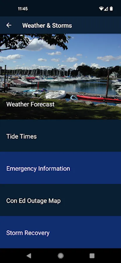 A weather section, showing storm information, weather forecasts, tides, emergency info and Con Ed outage maps.