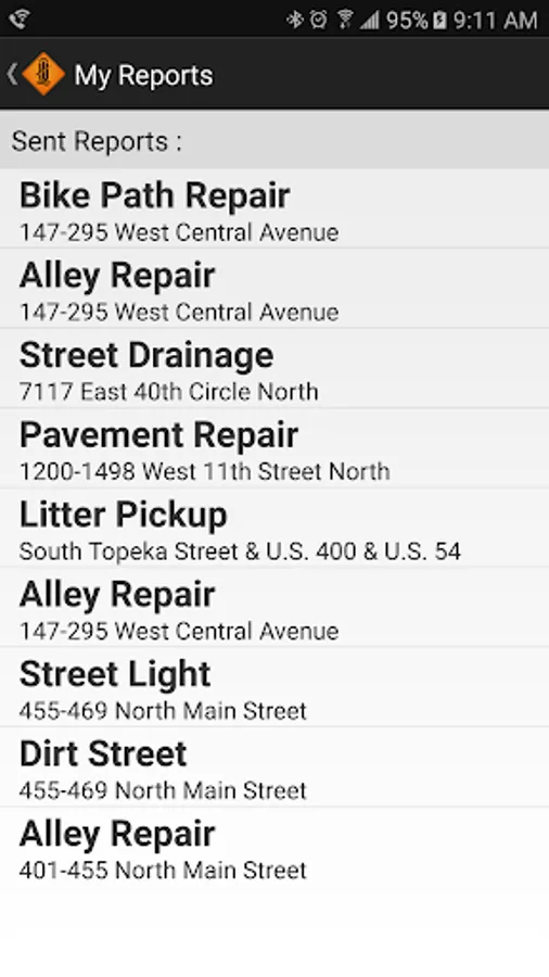 Wichita Report is a great tool for enabling the residents of Wichita to improve their neighborhood by reporting issues such as potholes, broken street lights, damaged signs, and illegal dumping.