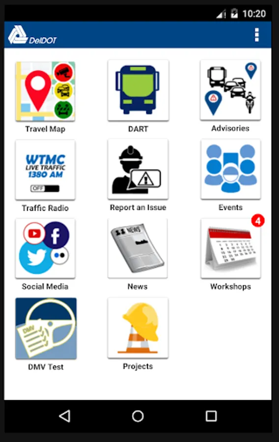 This application is provided to the public by the Delaware Department of Transportation and includes the latest news, events, traffic and travel information.