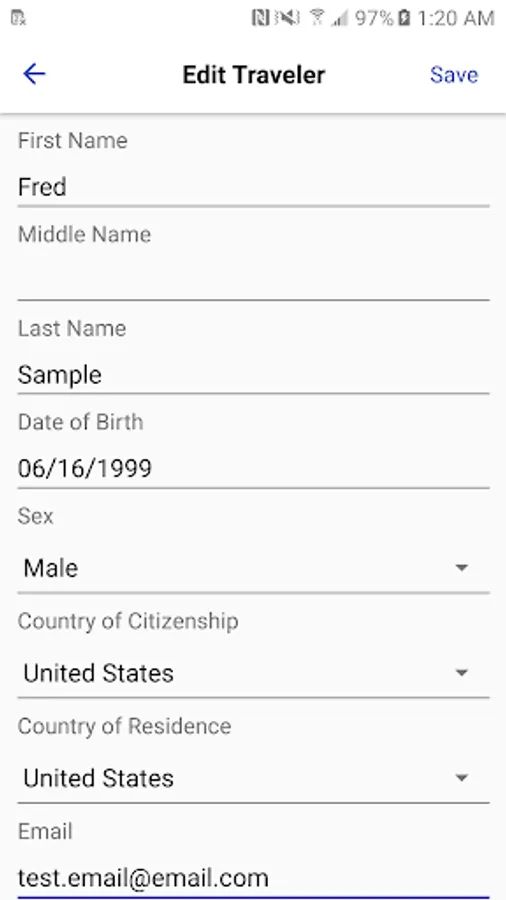 Create a trip by adding travelers, your mode of travel, your location, and contact information.