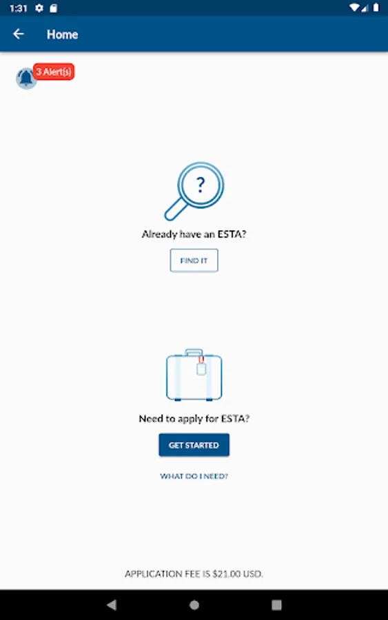 • The “FIND IT” feature allows travelers to check the status of their existing ESTA application..