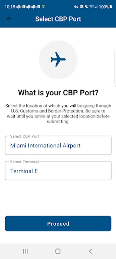 2.) Upon landing, travelers select their method of travel, port of entry and terminal, answer CBP inspection related questions, certify the truthfulness and accuracy of their answers, and submit their profiles and responses to CBP.