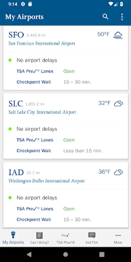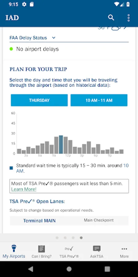 + Check crowd-sourced TSA security checkpoints wait times at the airport of your choice.