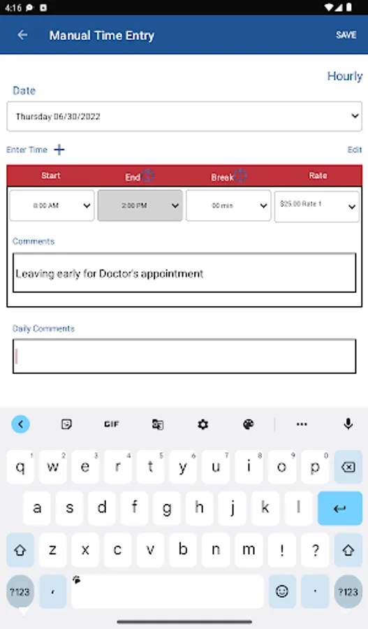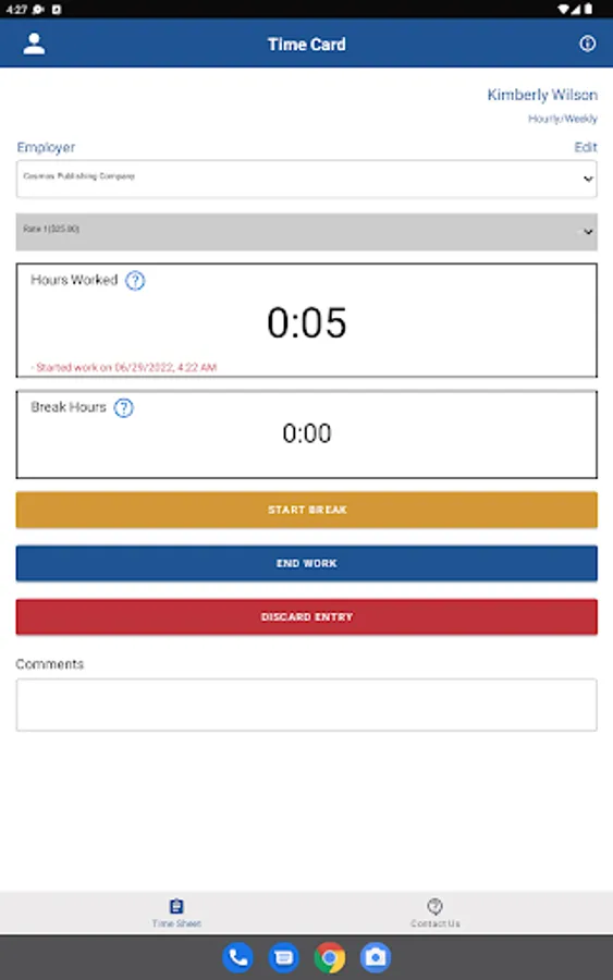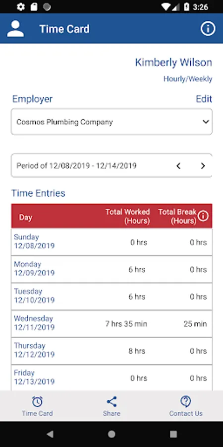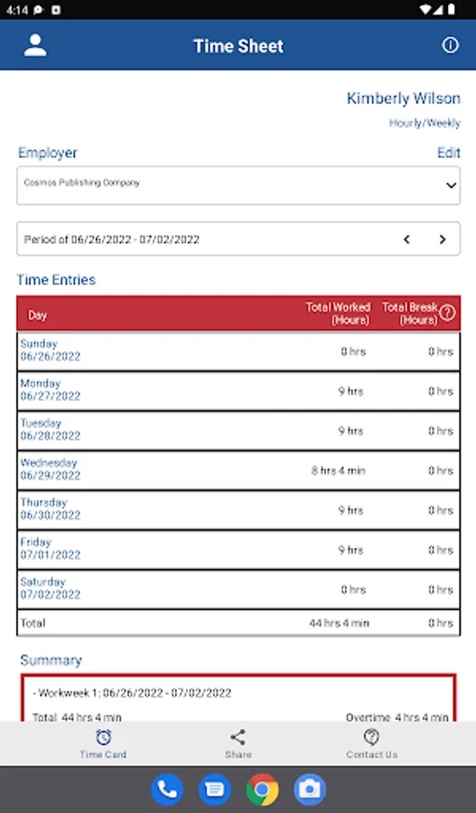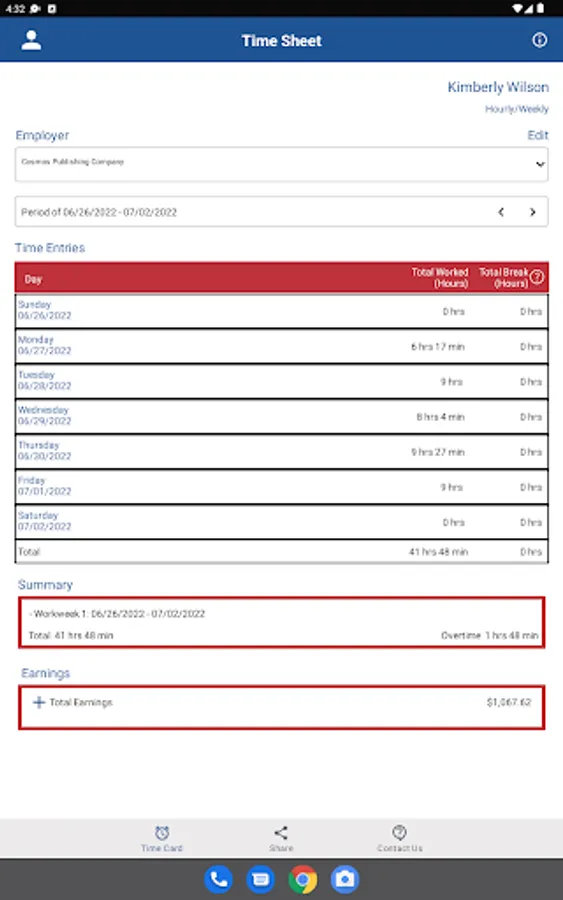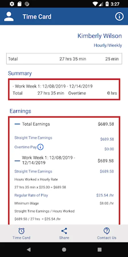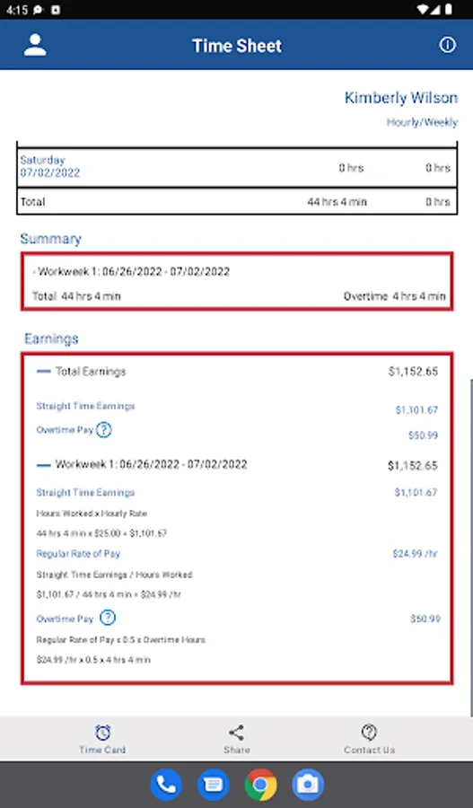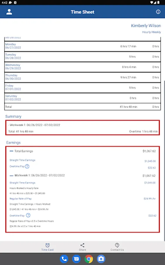 This app provides a timesheet for employees and employers to record work time and calculate pay. It also performs overtime pay calculations at a rate of one and one-half times (1.5) the regular rate of pay for all hours you work over 40 in a workweek.
