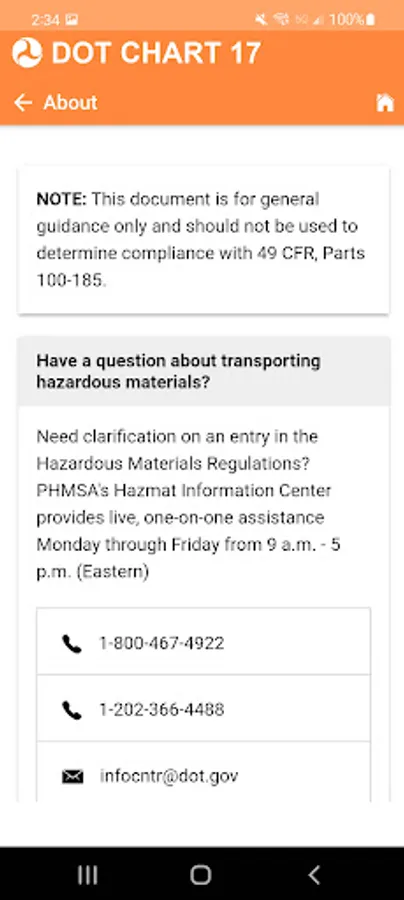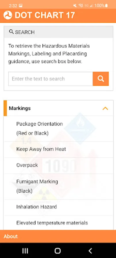 The Pipeline and Hazardous Materials Safety Administration’s (PHMSA) DOT Chart-17 provides a full-color display of the markings, labels, and placards specified in the Hazardous Materials Regulations (HMR; 49 CFR Parts 171-180). This mobile application allows shippers, carriers, and other stakeholders to quickly access visual information and HMR citations from DOT Chart-17.