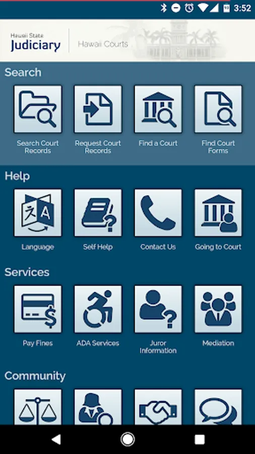 The Hawaii Courts app brings together tools and resources developed by the Hawaii State Judiciary and other key partners to improve access to justice.