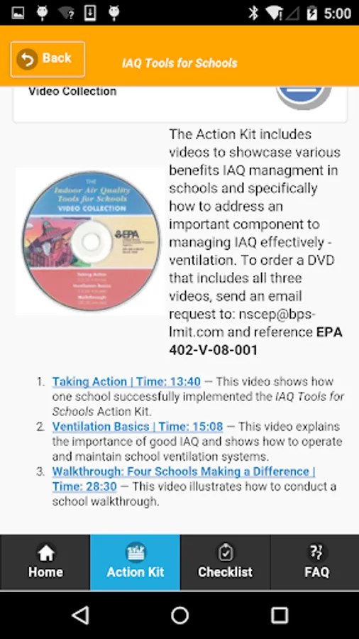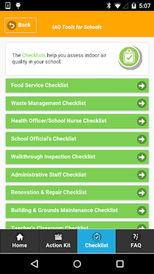 The School IAQ Assessment app will serve as a “one-stop shop” for merging guidance from EPA’s IAQ Tools for Schools Action Kit with proven strategies for specifically addressing ventilation, cleaning and maintenance, environmental asthma triggers, radon, and integrated pest management. Whether you are developing, sustaining or reinvigorating your IAQ management program, this tool will help you identify and prioritize IAQ improvements district-wide.