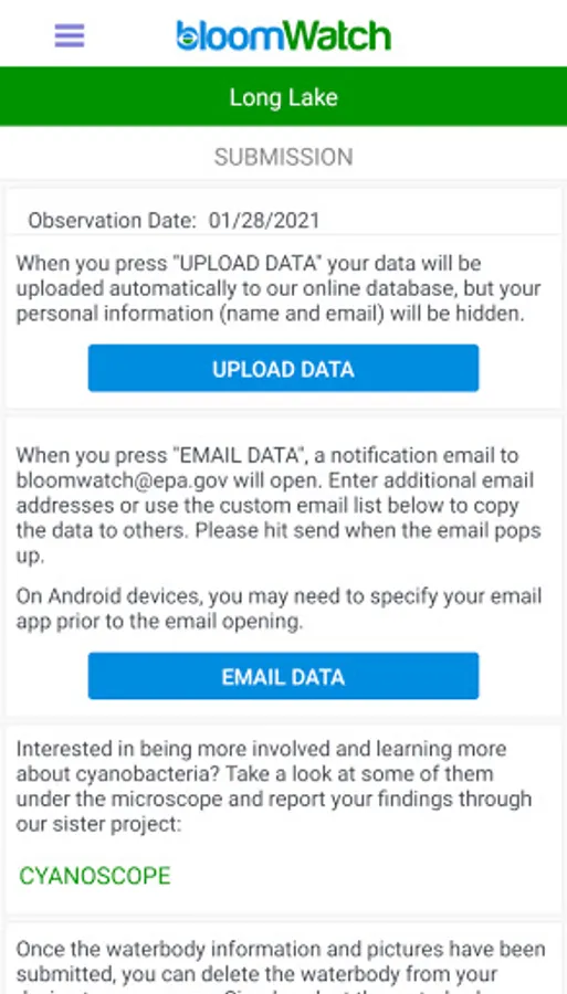 Bloomwatch is a citizen science app that allows users to report potentially harmful algal blooms. The data provided helps scientists to track and manage the water we all depend on to drink or swim in.