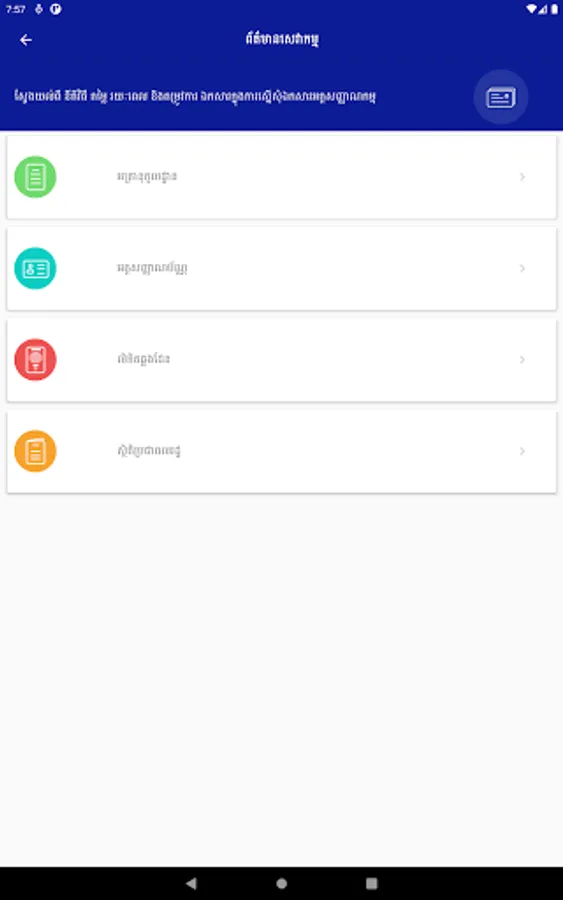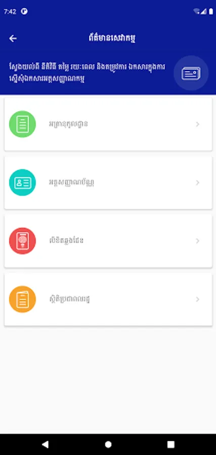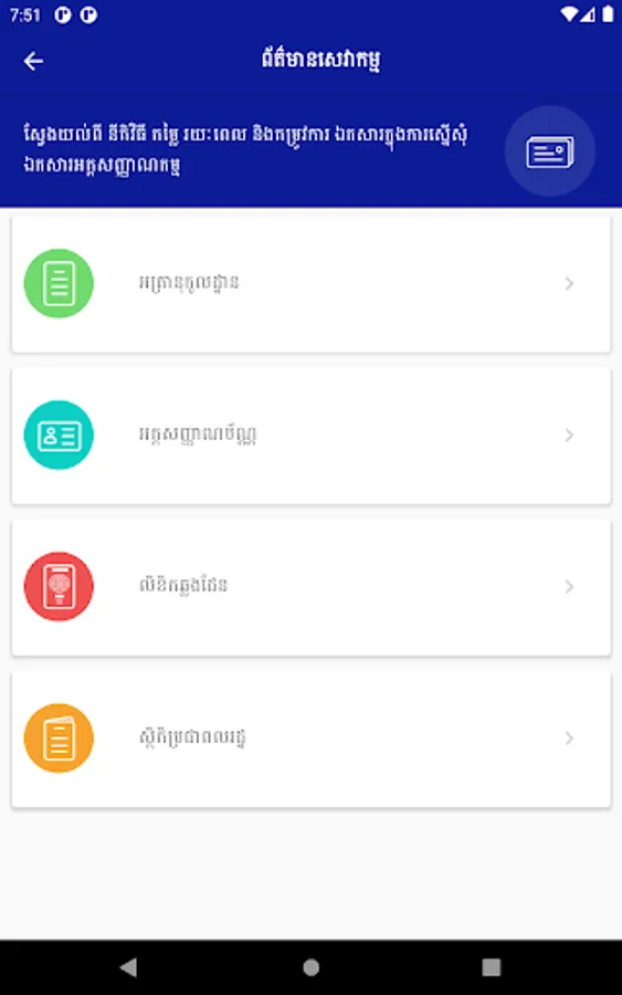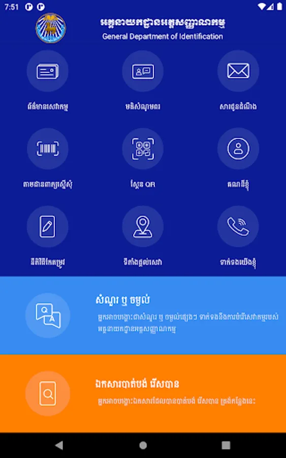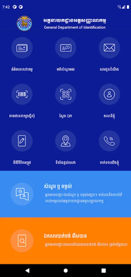 This app is a useful app for both IOS and Android users in Cambodia who need to find their information and services about the General Department of Identification. This GDI eServices app provides the following uptodate information and services below: