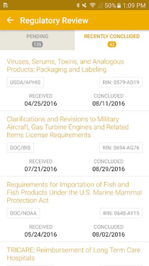 o View detailed information about OIRA’s pending and concluded reviews of significant rulemakings