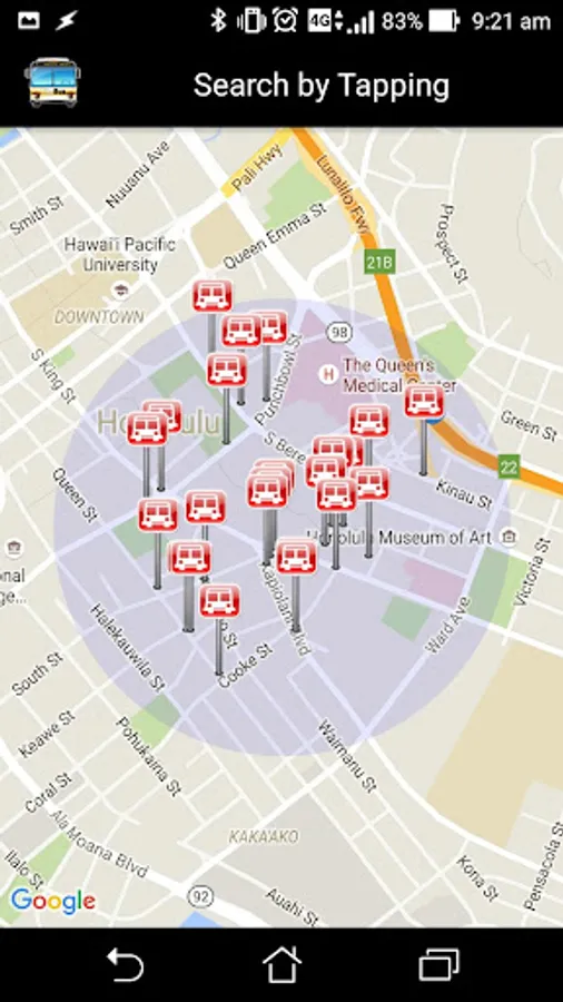 - Search for bus stops by tapping on the map.