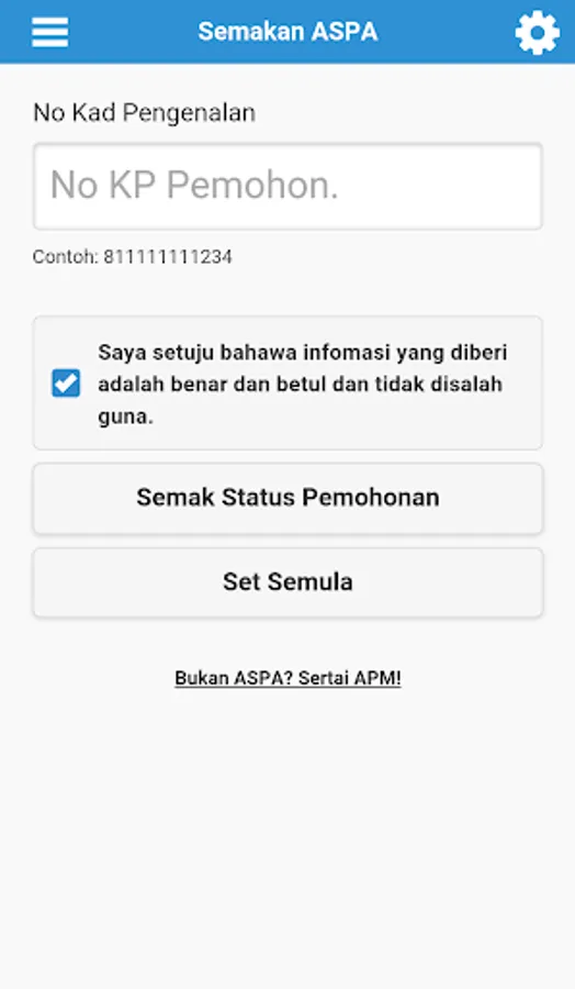 - Semakan ASPA (Sukarelawan)