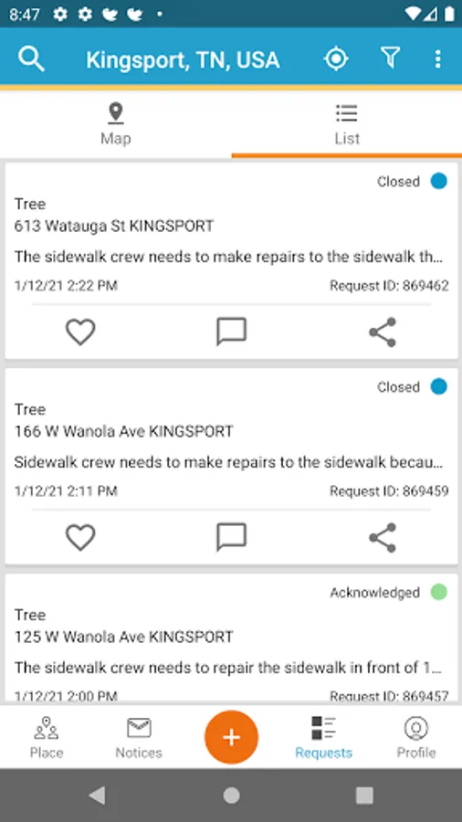 Welcome to ConnectKingsport—the app for everything Kingsport! From potholes and damaged street signs to other local issues that need attention, ConnectKingsport makes reporting an issue easier than ever. This app uses GPS to recognize your location and gives you a menu of common quality-of-life conditions to select from. The app also allows you to upload pictures or videos to accompany your request. Residents can track the status of reports they or other members of the community have submitted until the issue is resolved.