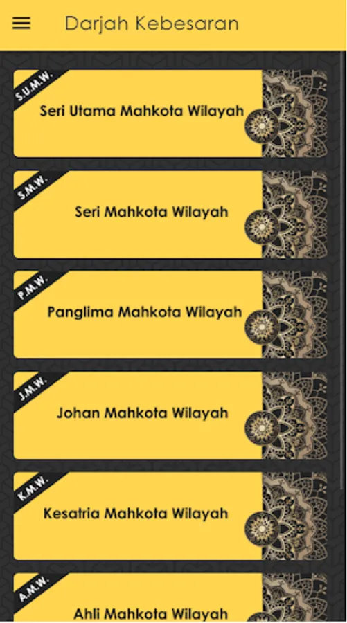 1. Utama : Memaparkan maklumat ringkas berkenaan 7 jenis pingat yang dikurniakan.