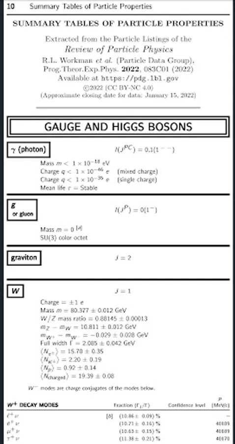 The current version of the app provides the latest Particle Physics Booklet extracted from the Review of Particle Physics, R.L. Workman et al. (Particle Data Group), Prog. Theor. Exp. Phys. 2022, 083C01 (2022).
