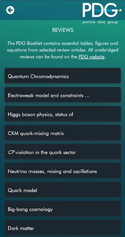 This app makes PDG's Particle Physics Booklet available on your phone, even when you have no Internet access.