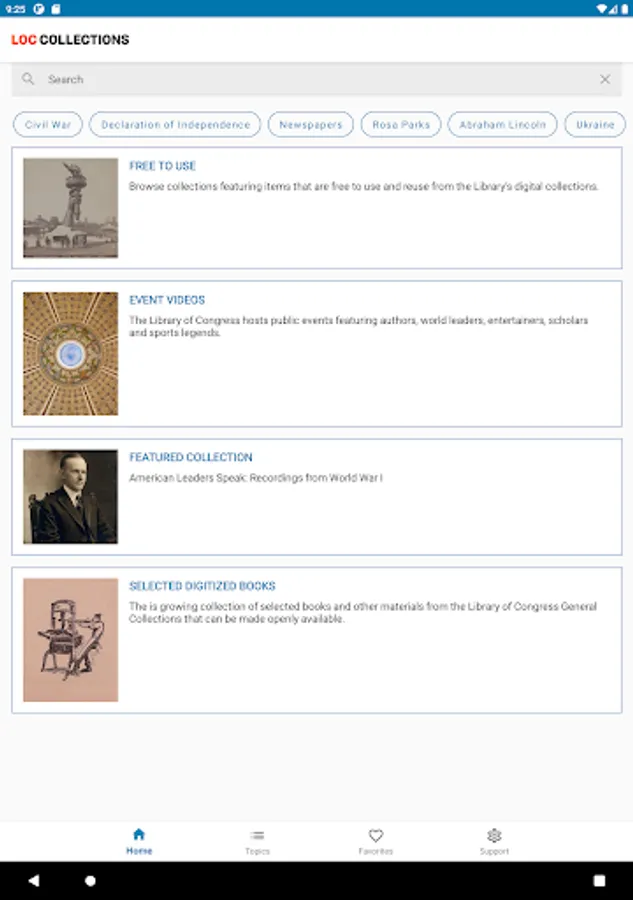 Explore the Library of Congress digital collections. The Library of Congress is the largest library in the world. Use LOC Collections to access iconic photos, historic maps, books, films, newspapers, manuscripts and sound recordings.