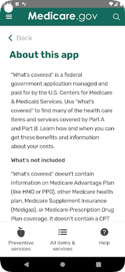 This is Medicare’s first official app, and we value your feedback. Please tell us your thoughts by rating What’s covered.