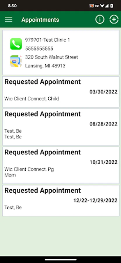 upcoming appointments, view food benefits that have been issued to them in the clinic,